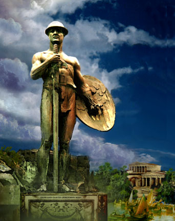 The Colossus of Rhodes: He was made of brass plates. When he crashed to the ground from an earthquake, you could walk through his body parts.